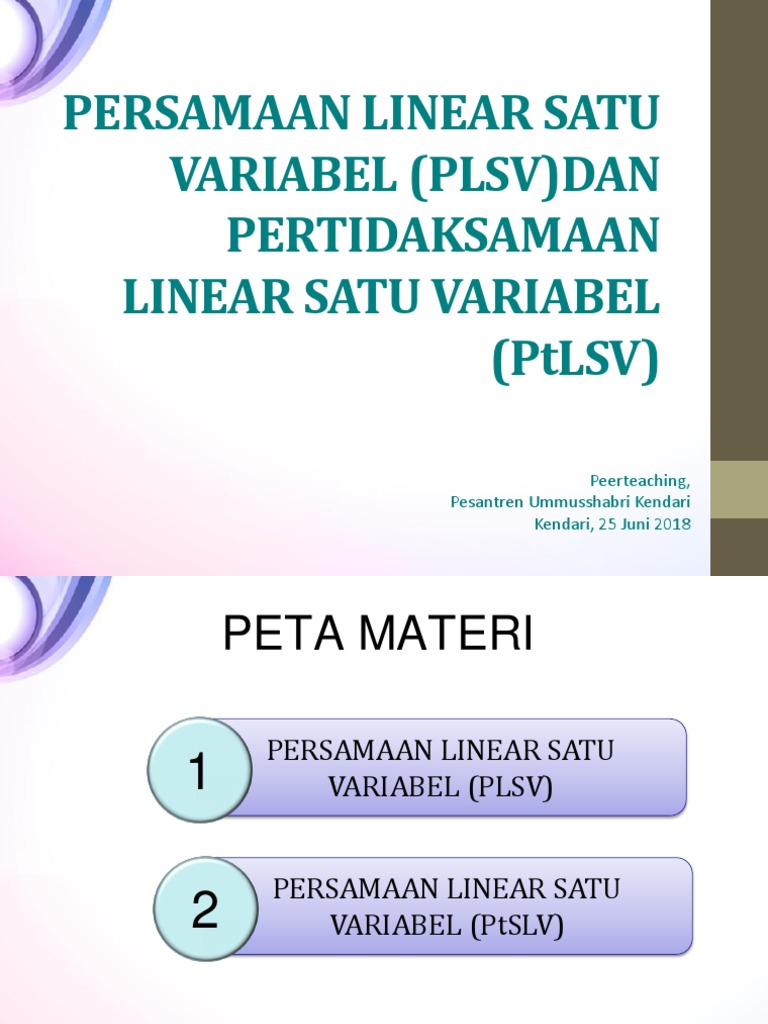 Contoh Soal Matematika Kelas 7 Tentang Persamaan Linear Satu Variabel. Menambah atau mengurangi kedua ruas (kanan Demikian penjelasan artikel diatas tentang Persamaan Linear Satu Variabel - Pengertian. Sebelum disajikan latihan soal yang disertai pembahasannya, terlebih dahulu kita akan mempelajari apa yang dimaksud dengan Persamaan.